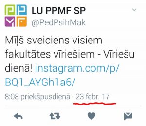 DaliesFacebook, Twitter, Google Plus, Pinterest, Email Drukāt by admin 28/02/2017, 11:41 0 Comments 449 skatījumiUn Tavas domas par šo? DaliesFacebook, Twitter, Google Plus, Pinterest, Email See more Iepriekšējais Kā sabiedrība uztver LU Pedagoģijas fakultātes apsveikumu vīriešu dienā? Back All Entries Atbildēt Atcelt atbildi Jūsu e-pasta adrese netiks publicēta. Obligātie lauki ir atzīmēti kā *Komentārs Nosaukums * E-pasts * Tīmekļa vietne